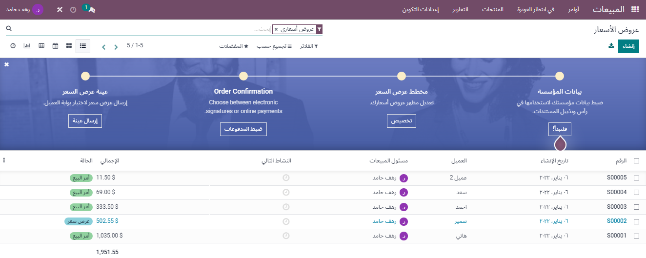 ببضع نقرات فقط، تستطيع تحويل عروض الأسعار إلى أمور بيع ومن ثم إلى فواتير